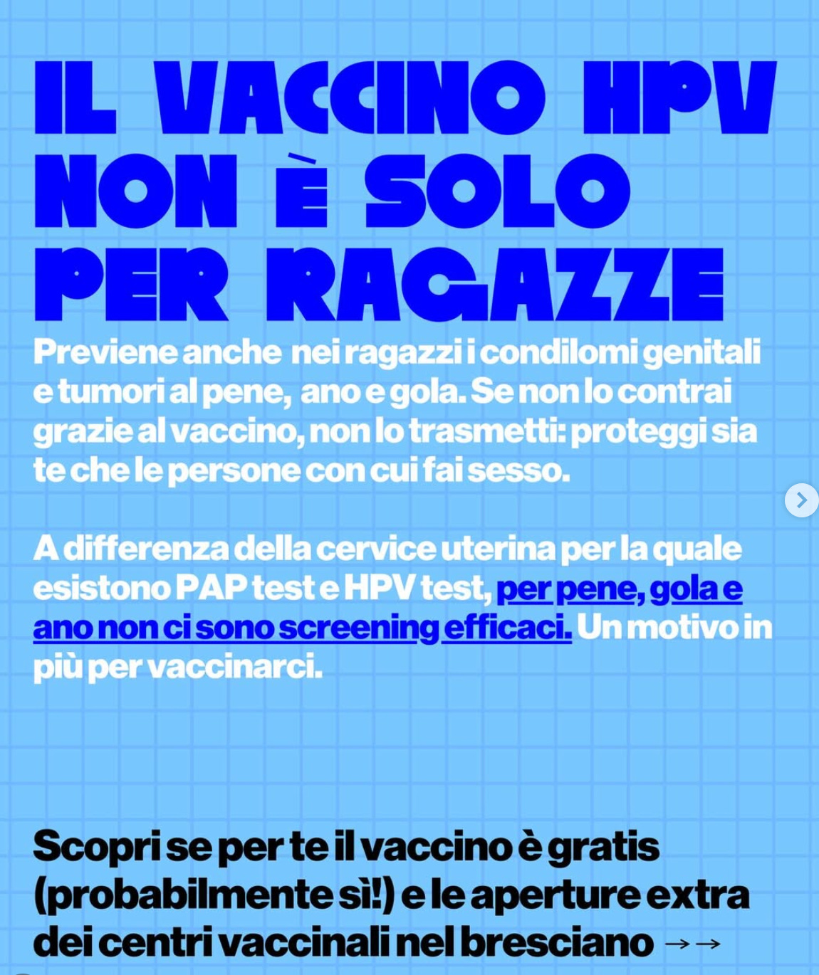 Il vaccino non è solo per le ragazze. Se un maschio non lo contrai grazie al vaccino, non lo trasmette neppure ad altre ragazze. A differenza della cervice uterina per cui esiste PAP test e HPV test, per pene, gola e ano non esistono inoltre screening efficaci.