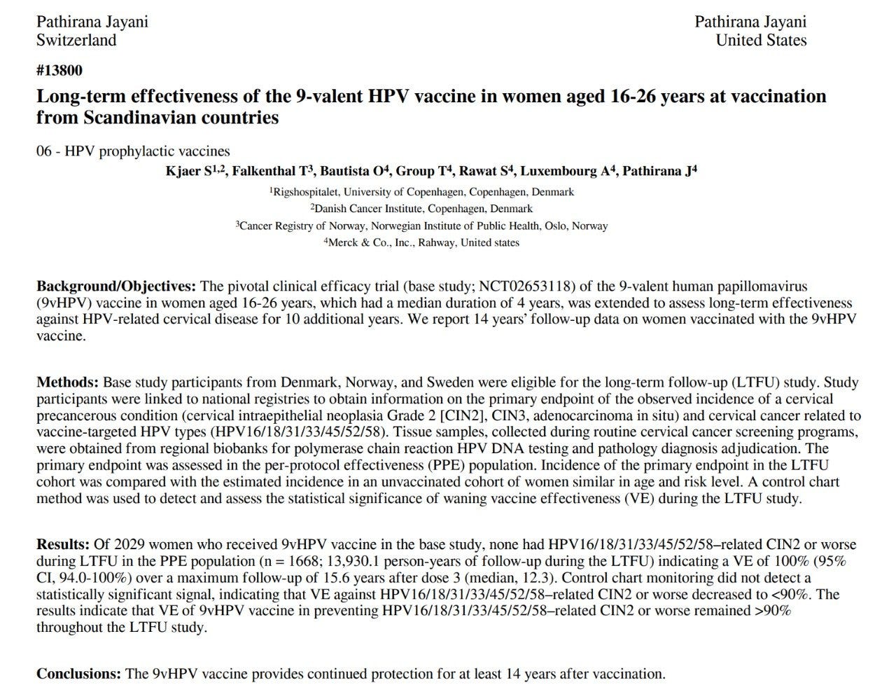 Su più di 2000 donne e persone con cervice vaccinate per HPV, nessuna ha contratto i ceppi HPV dai quali il vaccino protegge
